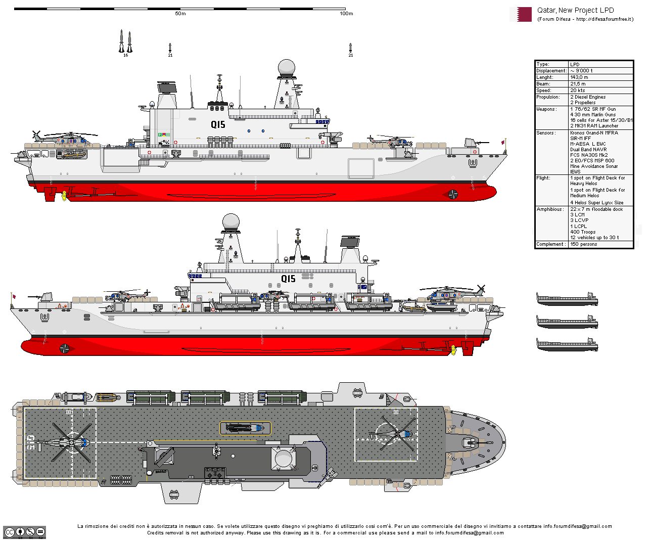 Η ουσία του σχεδίου κρύβεται στη διάταξη του. Καθώς διαθέτει κατάστρωμα πτήσεων, με δύο θέσεις για EH101 και άλλες δύο για ελικόπτερα τύπου Super Lynx, χώρο μεταφοράς 465 τετραγωνικών μέτρων, χώρο περίθαλψης 250 τ.μ., εσωτερικό κατάστρωμα 20,5 επί 7 μέτρα το οποίο πλημμυρίζει για έξοδο αποβατικών σκαφών, μία πρυμναία και μία πλευρική ράμπα, γερανογέφυρα 70 τόνων για τα αποβατικά μέσα και ανελκυστήρα 30 τόνων για μεταφορά φορτίου και ελικοπτέρων. Το γκαράζ μπορεί επίσης να χρησιμοποιηθεί ως χώρος υποδοχής ελικοπτέρου κατηγορίας Lynx ή MH-60R. Με αυτή τη διάταξη το πλοίο λειτουργεί ταυτόχρονα ως ναυτική πλατφόρμα αεροπορικών επιχειρήσεων, φορέας ειδικών δυνάμεων, αποβατικός κόμβος και πλωτό κέντρο υποστήριξης.
