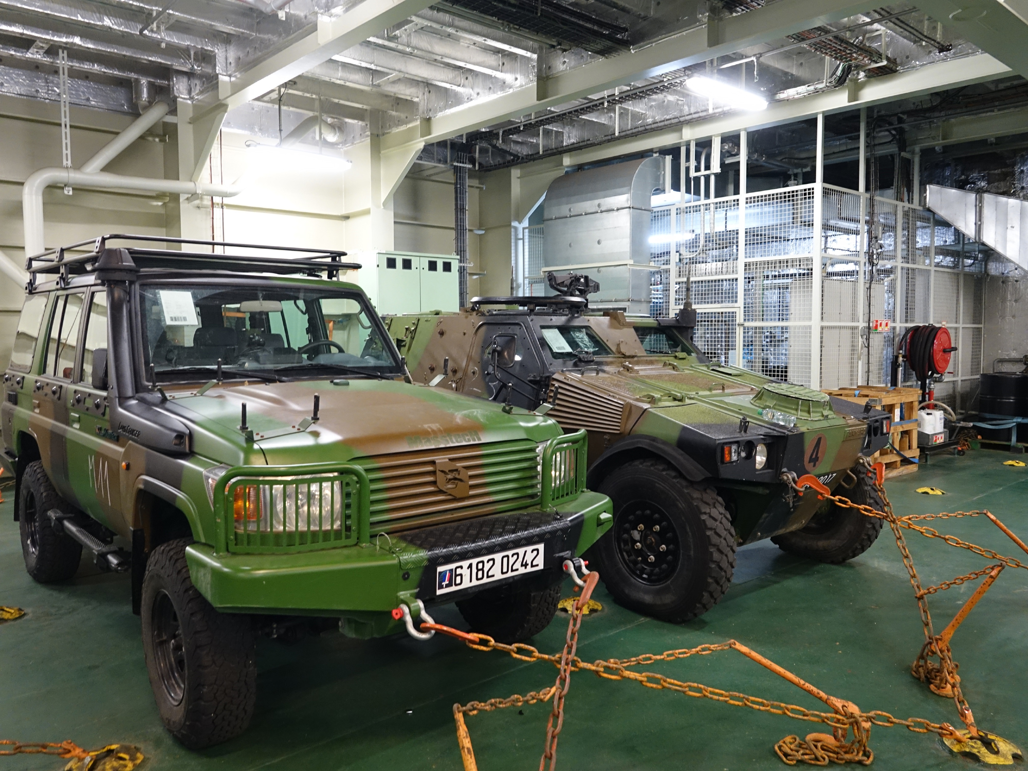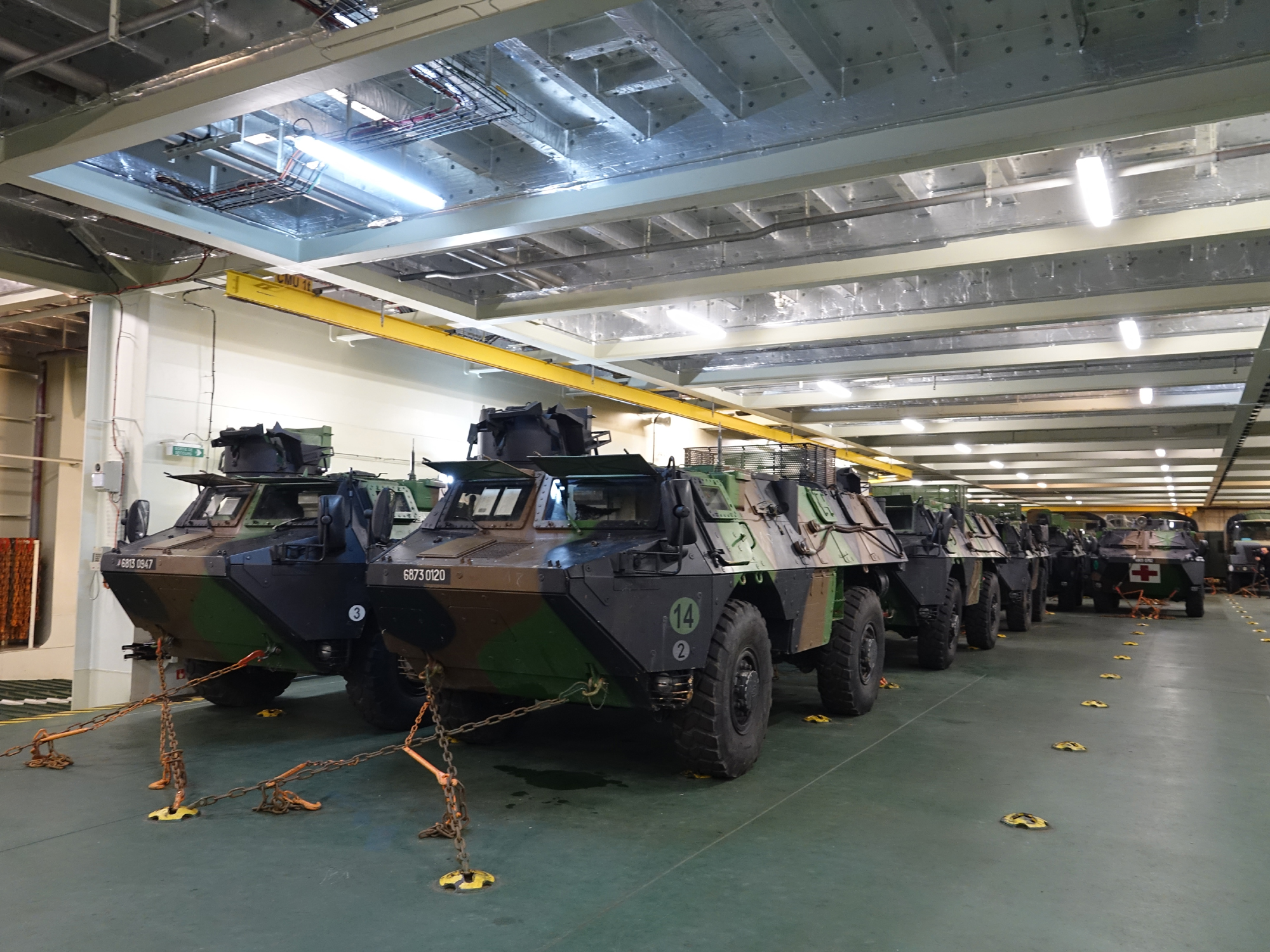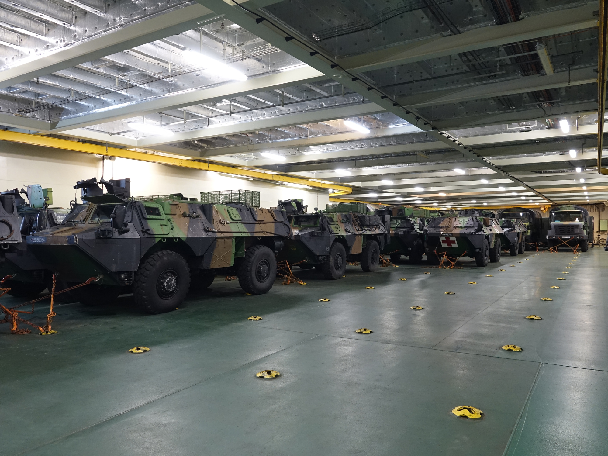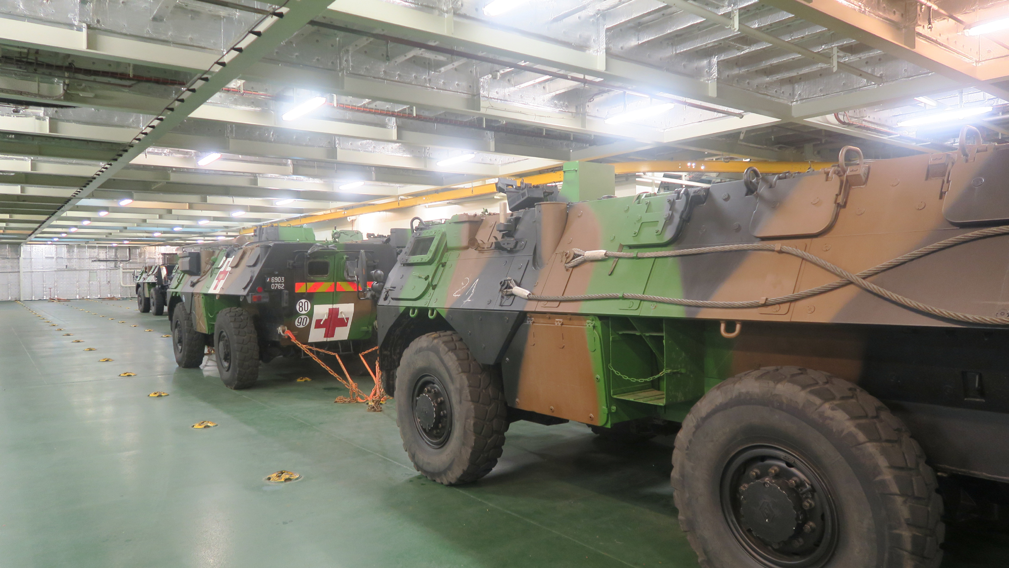 Το κατάστρωμα οχημάτων με δάπεδο αντοχής περιλαμβανομένων των αρμάτων μάχης. Στον τρέχοντα πλου το ελικοπτεροφόρο μεταφέρει ένα ενισχυμένο λόχο πεζοναυτών με VBL και RC-10, που θα λάβει μέρος στην Άσκηση ΜΕΓΑΣ ΑΛΕΞΑΝΔΡΟΣ 2020