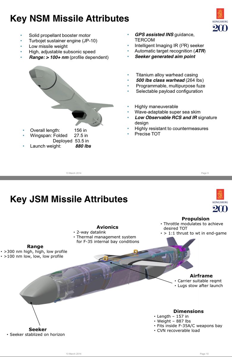 Τέλος, το βλήμα JSM (δηλαδή πάλι το NSM σε αεροεκτοξεύομενη έκδοση) έχει ήδη πιστοποιηθεί για βολή από τα μαχητικά F-35 ενώ είναι προχωρηνέμη η διαδικασία και για F-16. Άρα η συγκεκριμένη οικογένεια βλημάτων θα μπορεί να υπηρετήσει παράλληλα σε πλοία και υποβρύχια, αλλά και μαχητικά της Αεροπορίας μας!