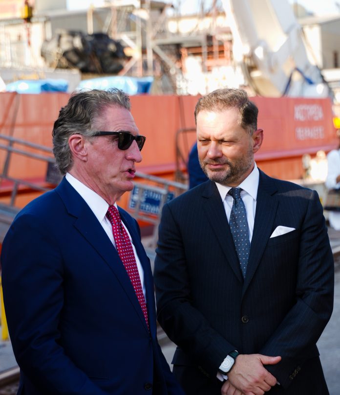 Ο Πρόεδρος και Διευθύνων Σύμβουλος του Ομίλου ΟΝΕΧ & Πρόεδρος της Ένωσης Ελληνικών Ναυπηγείων, κ. Πάνος Ξενοκώστας, υποδέχθηκε τον Αμερικανό Υπουργό, ο οποίος συνοδευόταν από τον Υπουργό Περιβάλλοντος και Ενέργειας, κ. Σταύρο Παπασταύρου. Τα Ναυπηγεία Ελευσίνας φιλοξένησαν, επίσης, διμερείς συναντήσεις του κ. Burgum με τον Υπουργό Ανάπτυξης, κ. Τάκη Θεοδωρικάκο, και τον Υπουργό Ναυτιλίας και Νησιωτικής Πολιτικής, κ. Βασίλη Κικίλια.