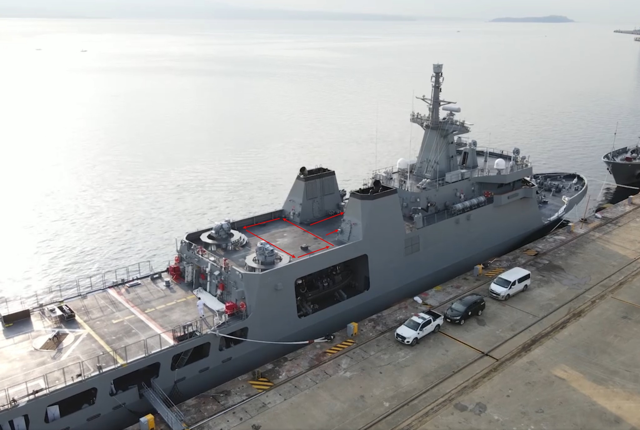 Με την παράδοση του νέου περιπολικού ανοικτής θαλάσσης, BRP Rajah Sulayman (PS 20), στο Πολεμικό Ναυτικό των Φιλιππίνων, το σκάφος των 2.450 τόνων εμφανίστηκε να επιχειρεί με μη επανδρωμένα αεροχήματα κάθετης απονήωσης/προσνήωσης (VTOL). Φωτογραφίες από την τελετή άφιξής του στη ναυτική βάση στον κόλπο του Subic, παρουσιάζουν τουλάχιστον δύο drone VTOL στο ελικοδρόμιο.