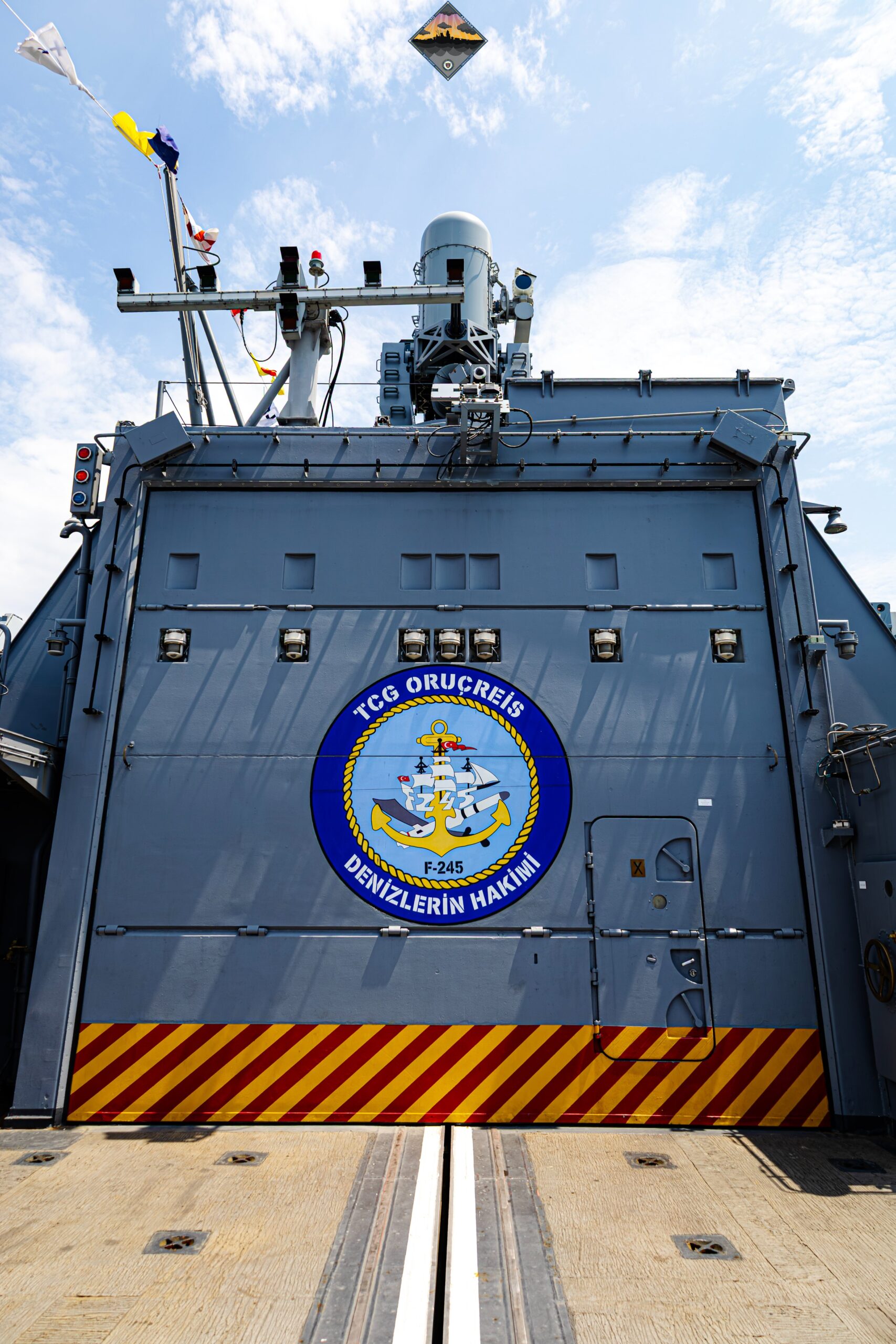 Μια σειρά από φωτογραφίες που δημοσίευσε στον λογαριασμό του στο X o φωτογράφος πλοίων του Τουρκικού Ναυτικού @Yamato_Armada, μας δίνουν μια αρκετά καθαρή εικόνα των εξωτερικών παρεμβάσεων που έχει δεχθεί η φρεγάτα F-245 Orucreis, η πρώτη της κλάσης που παραδίδεται, στα πλαίσια του προγράμματος εκσυγχρονισμού BARBAROS-MLU. Είναι εμφανής η τοποθέτηση 12 αντιπλοϊκών βλημάτων Atmaca στο μεσόστεγο, καθώς και η αλλαγή στη σύνθεση των συστημάτων εγγύς αυτοπροστασίας (CIWS) του πλοίου, με την τοποθέτηση του εγχώριας κατασκευής GOKDENIZ της Aselsan στην πλώρη πίσω από το πυροβόλο Mk45 και ενός εκσυγχρονισμένου Mk15 Phalanx Block 1B Baseline 2 πάνω από το υπόστεγο του ελικοπτέρου.